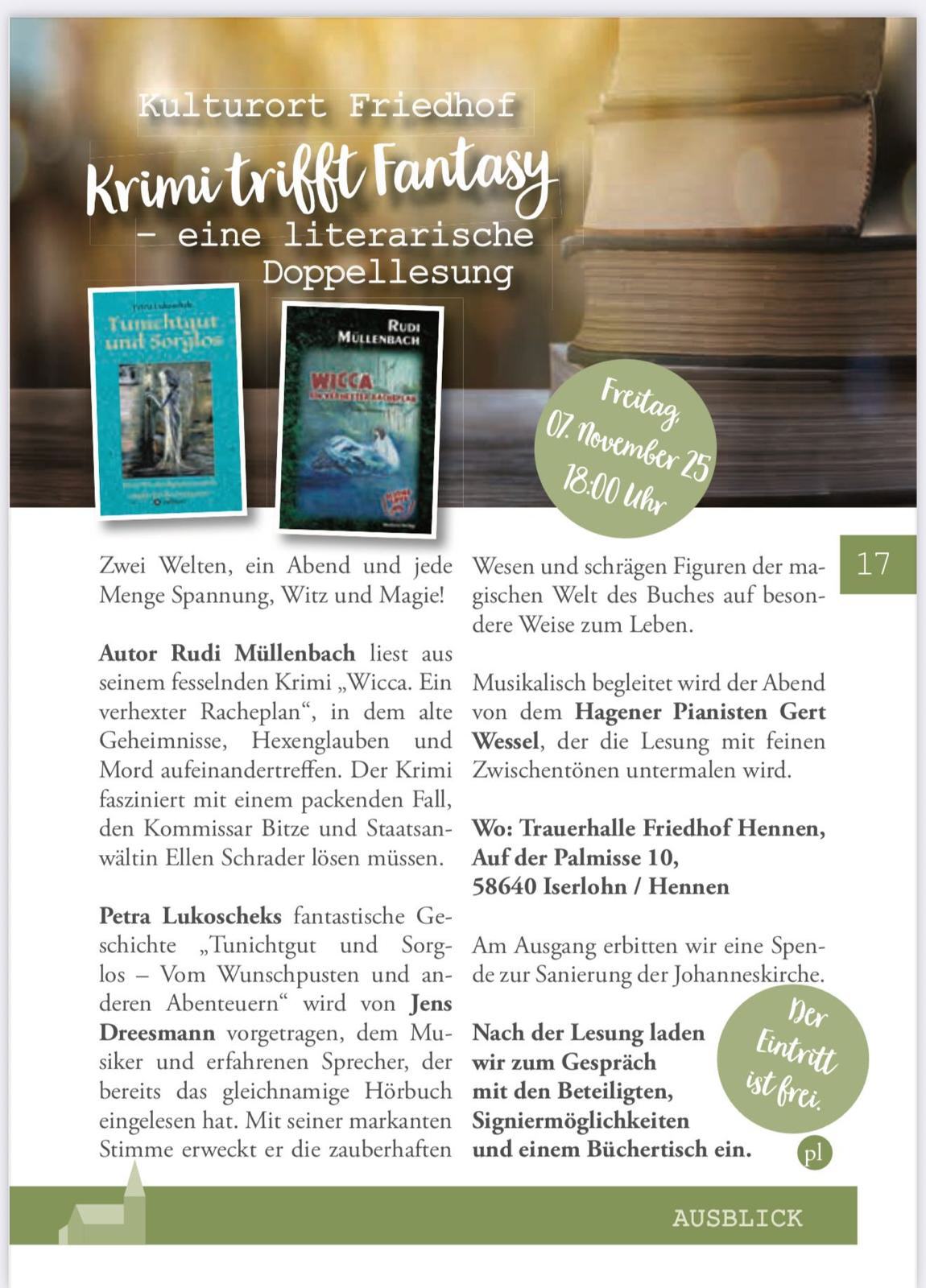Fotos der Lesung in der Trauerhalle, Friedhof Hennen.